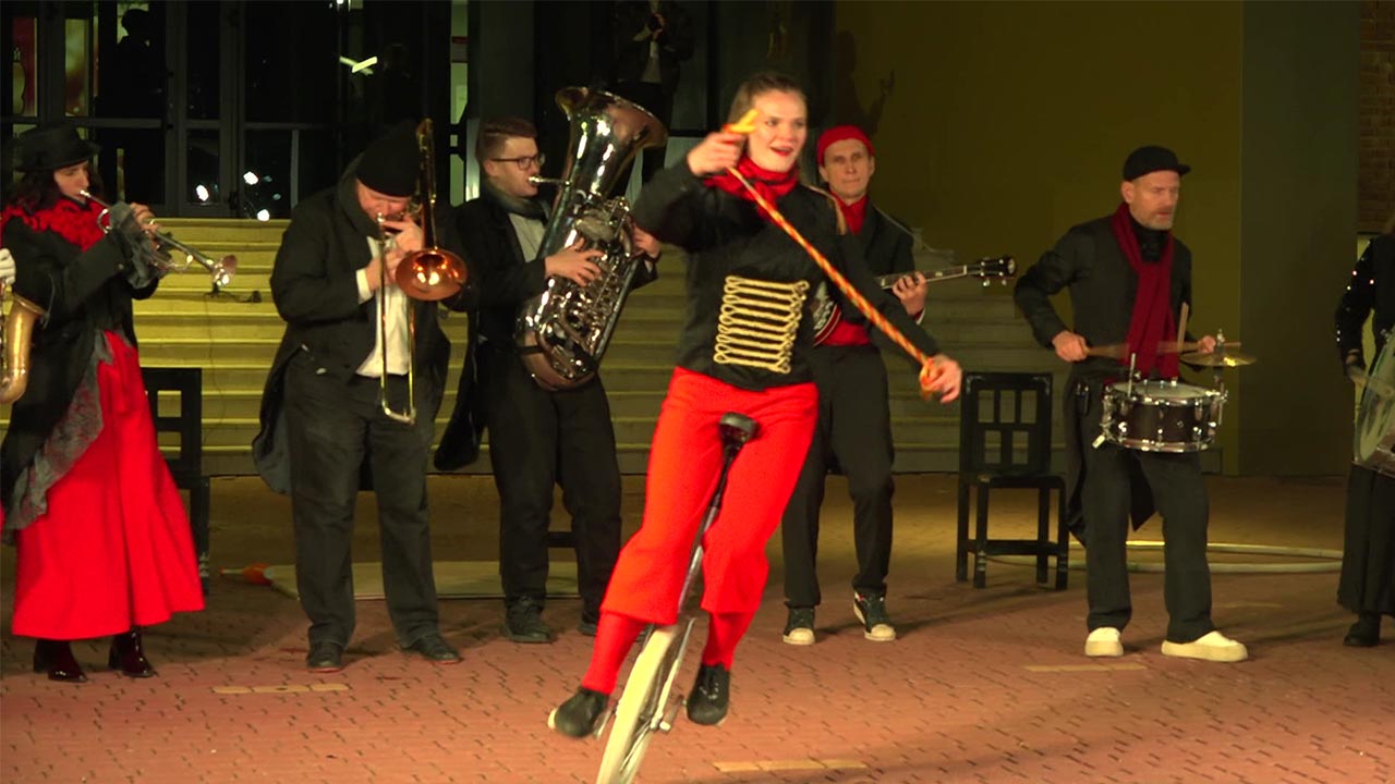 Сцена под открытым небом, улыбки, аплодисменты. Всё это напоминает большой праздник. Фестиваль начался с уличной цирковой постановки "Шоу Грандиозо!" от столичного коллектива "Пакава Циркус". Артисты соединили цирковое искусство, живую музыку и уличный театр, превратив городскую площадь в настоящую сцену.