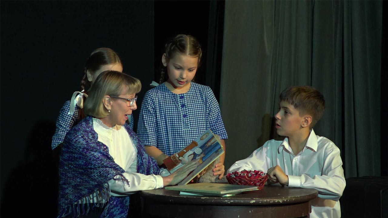 На сцене бабушка, окружённая внуками. Она читает детям сказку, а за спиной, стараниями артистов ТЮЗа, "оживают" книжные строки книги. Серия новых спектаклей рассчитана не только на маленьких зрителей, но и на их родителей, бабушек и дедушек.