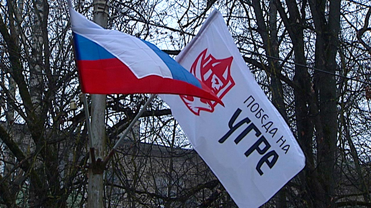 На улице Гвардейской флаги появились раньше, чем в других районах города. Организаторы считают, что у людей должно быть праздничное настроение. Улица должна быть наряжена. К российскому триколору прибавили флаг с логотипом «Победа на Угре».