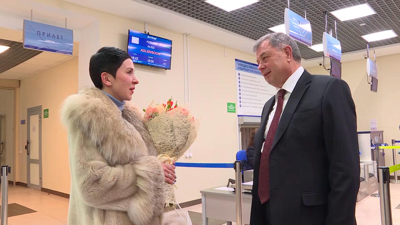 Международный аэропорт «Калуга» принял стотысячного пассажира. Им стала Александра Калинина, которая прилетела рейсом из Сочи. Девушка родом из Калуги, но сейчас живёт на черноморском побережье, в областной центр она прилетела на праздники к родным. Пассажирку встречали представители авиакомпании и калужского аэропорта, а также губернатор Анатолий Артамонов. Александре вручили сертификат на два бесплатных билета по любому из направлений авиакомпании.