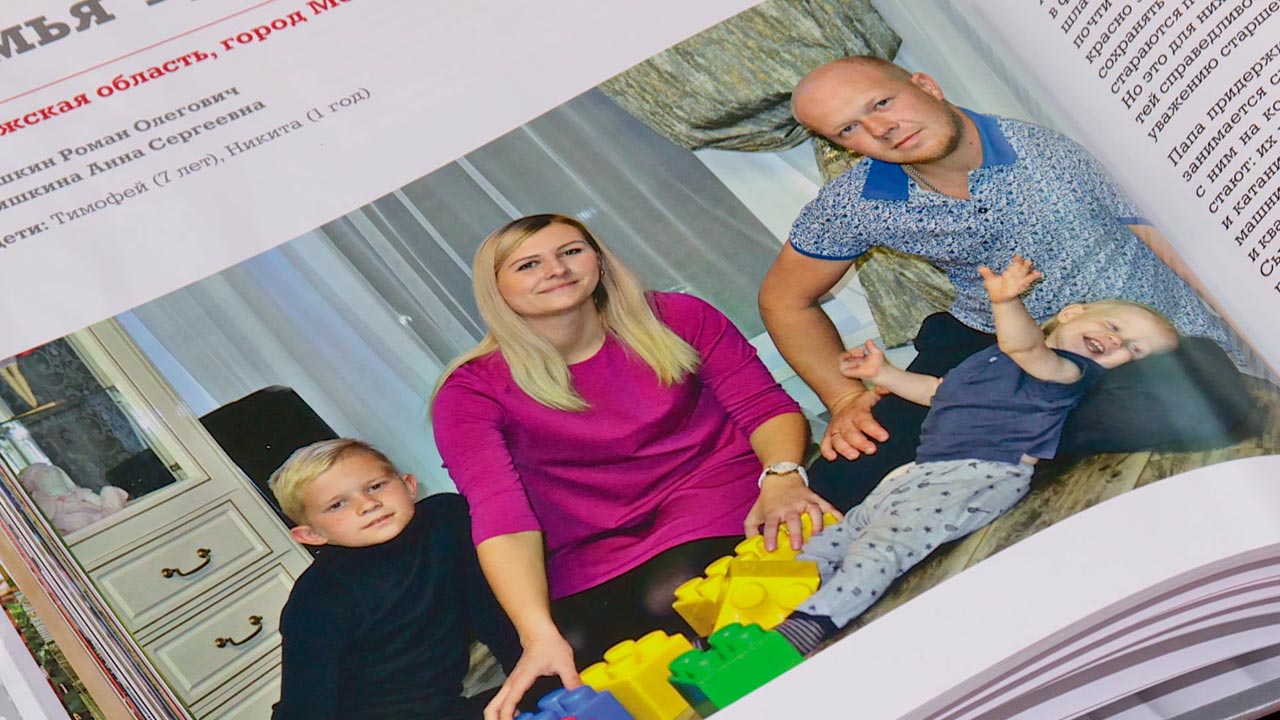 На страницах этой памятной книги - истории всех семей-победительниц. На 70-й - рассказ о Тришкиных. Анна и Роман познакомились еще студентами. Он - будущий педагог, она - фармацевт. Поженились через полгода знакомства, и вот уже 9 лет счастливы в браке. Супруги говорят, характеры и интересы совпали идеально.