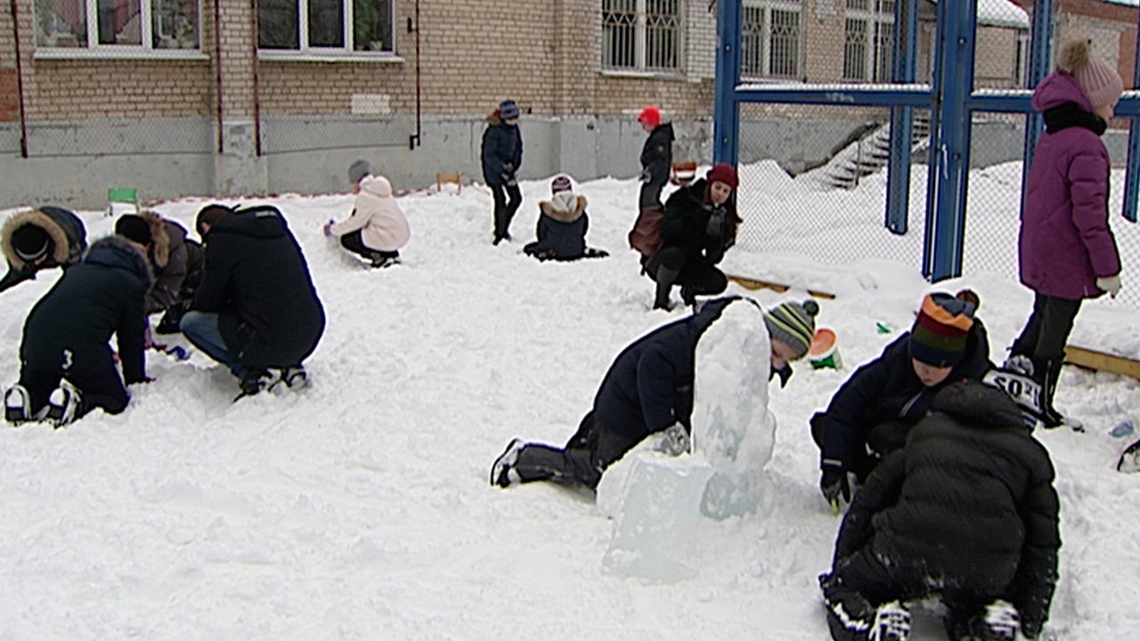 Блеснуть своими талантами в зимнем развлечении решили в калужской школе №15. Четвероклассники оделись потеплее и вышли на свежий воздух. Несмотря на то, что снег в этот день оказался неподходящим для лепки снеговиков, дети не растерялись, с охотой создавали из снежной массы всё, что получается. При этом решили сначала устроить свой собственный конкурс: поделились на группы, от каждой - своя фигура, потом выберут лучшую.