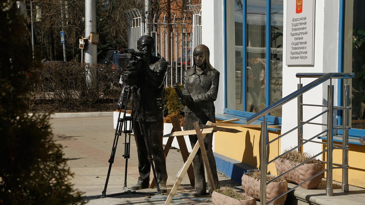 После реконструкции бронзовая девушка-журналист «вернулась» на своё место и вновь составила компанию телеоператору. Скульптурная композиция украшает входную группу ГТРК «Калуга». А появилась она в честь 25-летия нашей телерадиокомпании в 2017 году, как дань уважения всем, кто трудится в тележурналистике и ветеранам телевидения.