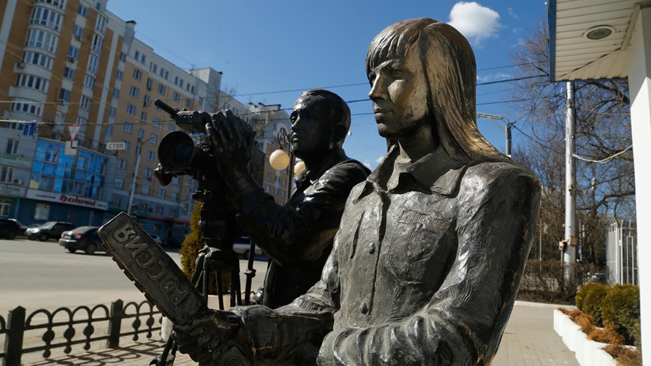 Прообразами стали наши коллеги, которые уже ушли из жизни. Через год бронзовое изваяние корреспондента не выдержало натиска любителей фото на память. Они расшатали его у основания, и в ноябре 2018-го фигуру девушки демонтировали. Теперь её вернули на прежнее место и надежно закрепили. В ближайшее время обновят указатели у подножия, чтобы все, кто желает получить снимок в наиболее выигрышном ракурсе, смогли здесь фотографироваться.