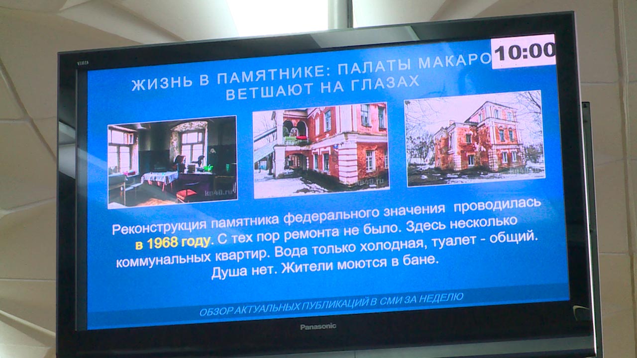 Памятник федерального значения палаты Макаровых стал объектом обсуждения на заседании правительства региона. В этом здании, которое поделено на коммунальные квартиры, до сих пор живут люди. В здании нет туалета, душа, вода только холодная. Но рассчитывать на иные условия жильцы не могут. Дом не признан аварийным и расселить его нет возможности. Городской голова Калуги Разумовский отметил, что сейчас заказана экспертиза, только она сможет признать здание аварийным, и после этого возможен процесс расселения. Один из возможных вариантов полностью привести здание в порядок - найти инвестора, который отремонтирует памятник и сделает в нём офисы.