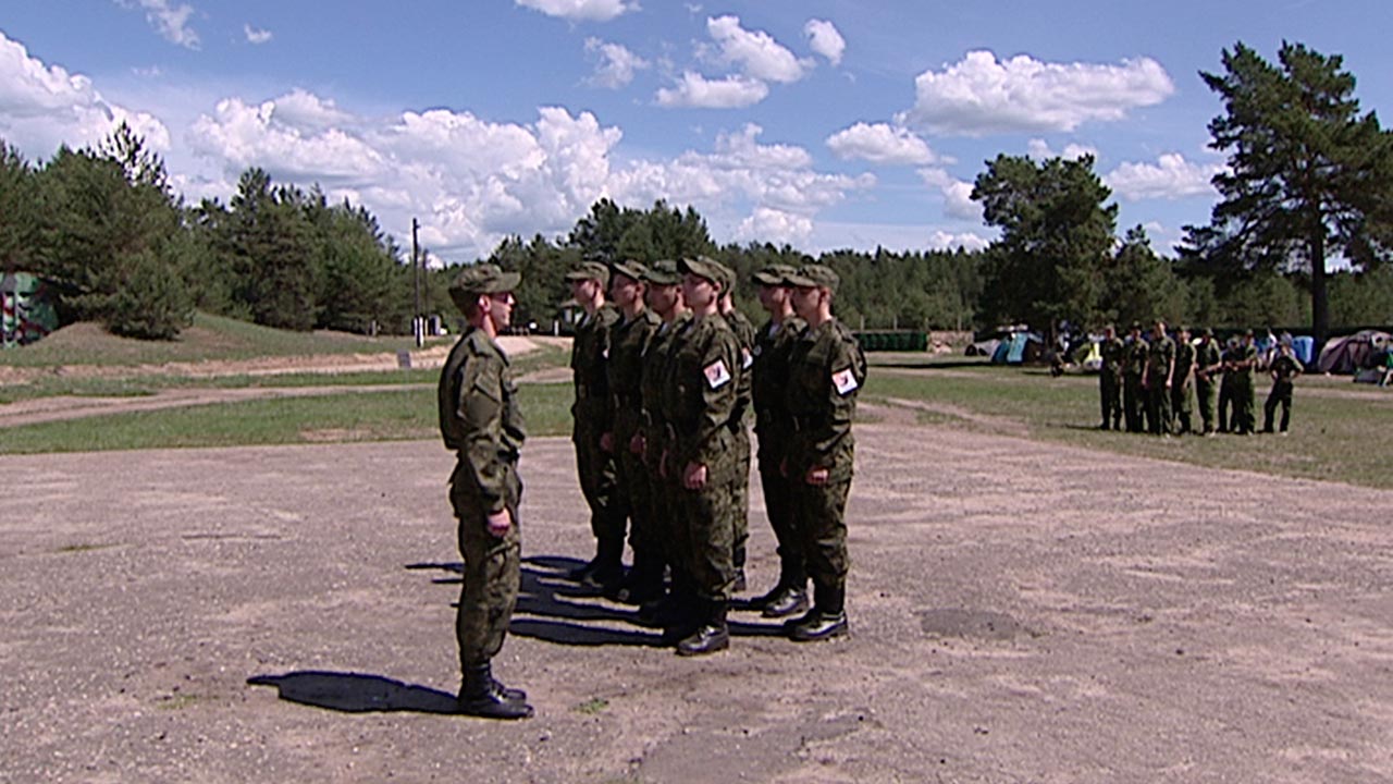 А вот строевая подготовка - это уже задание на оценку. Здесь будущие защитники Родины демонстрируют военную выправку, которую они тренировали изо дня в день в своих учебных заведениях. Пока это несложные команды: выйти из строя, уставное приветствие, повороты и развороты в движении. Выполнение всех этих действий первокурсник Брянского транспортного техникума Андрей Мугель отработал до автоматизма, поэтому уже заслужил должность командира отделения. Теперь на него равняются однокурсники.