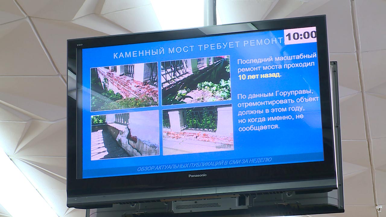Сейчас Каменный мост находится в ведомстве областного учреждения «Центр наследия». Именно они отвечают за состояние этого объекта. Отреставрированный 10 лет назад, Каменный мост вновь имеет непрезентабельный вид. Со стороны пешеходной зоны хорошо видно, что кирпичная кладка опять крошится и вновь осталась без покрытия. Главу региона заверили, что к концу августа эти проплешины приведут в порядок.