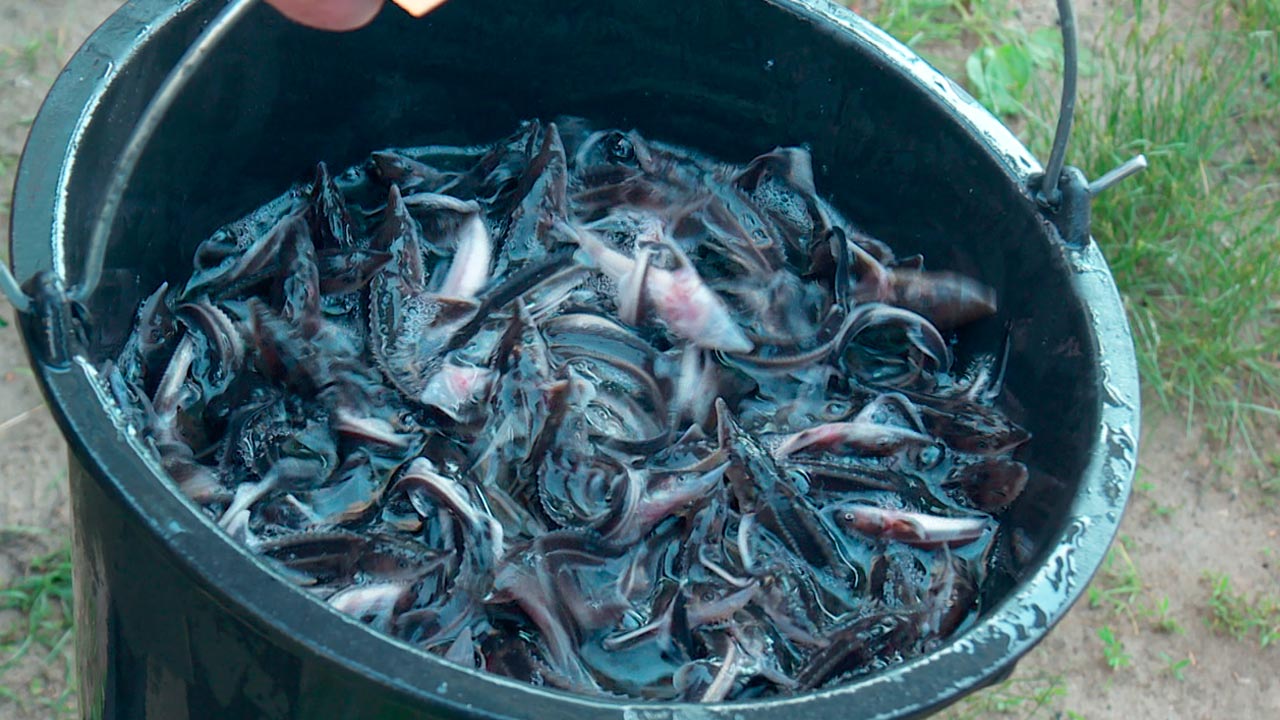 Зарыбление начинают с запуска в реку небольшого количества мальков, чтобы посмотреть, как они себя чувствуют после долгой дороги. Привезли стерлядь из рыбхозяйств разных регионов. Первая партия в этом году была совсем небольшая - 10 тысяч мальков. Сейчас уже - 130 тысяч.