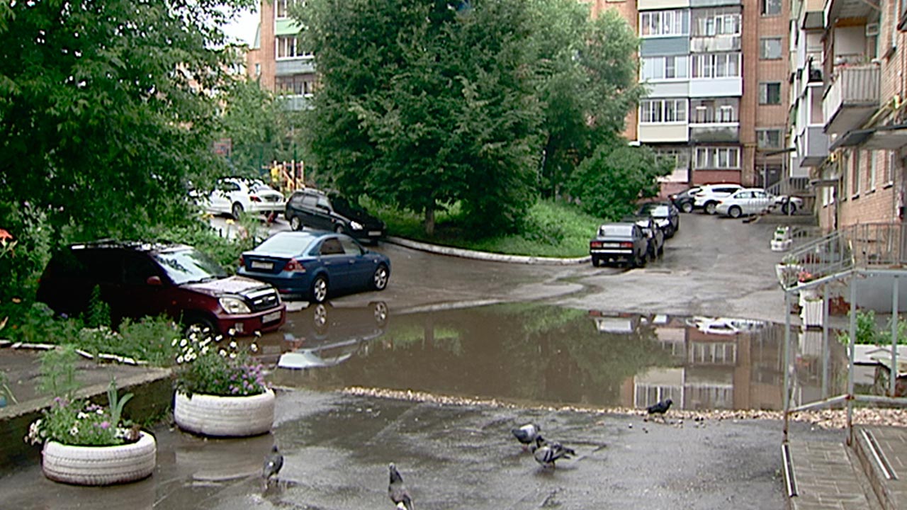 По словам жителей дома №13 на улице Гагарина, озеро во дворе образуется после каждого ливня. Причина всему - засорившаяся ливневая канализация. В этот раз глубина водоема не позволила жильцам попасть в припаркованный во дворе автомобиль. Лужа размером от подъезда до подъезда и глубиной примерно сантиметров 30 мешает пройти и пешеходам. Все обращения жителей в ответственные организации с просьбой прочистить ливневку пока так и остались без ответа.