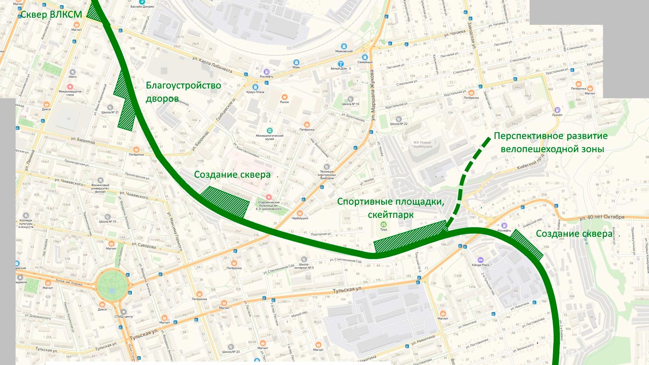 В первом неиспользуемая железная дорога станет улицей с автомобильным, велосипедным и пешеходным движением. Для этого объединят территории Резервного переулка, улиц Подгорной и Стеклянников Сад. Второй вариант предполагает переоборудовать ветку в пешеходную зону и общественное пространство, проложить велодорожки, создать зеленые зоны, детские и спортивные площадки. Третий вариант представляет собой некий гибрид двух предыдущих: на участке от улицы Билибина до Жукова это будет пешеходная зона и общественное пространство (как по варианту второму), а на участке от Жукова до Болдина – обычная улица (по варианту 1). Возможно, проекты будут дорабатываться.