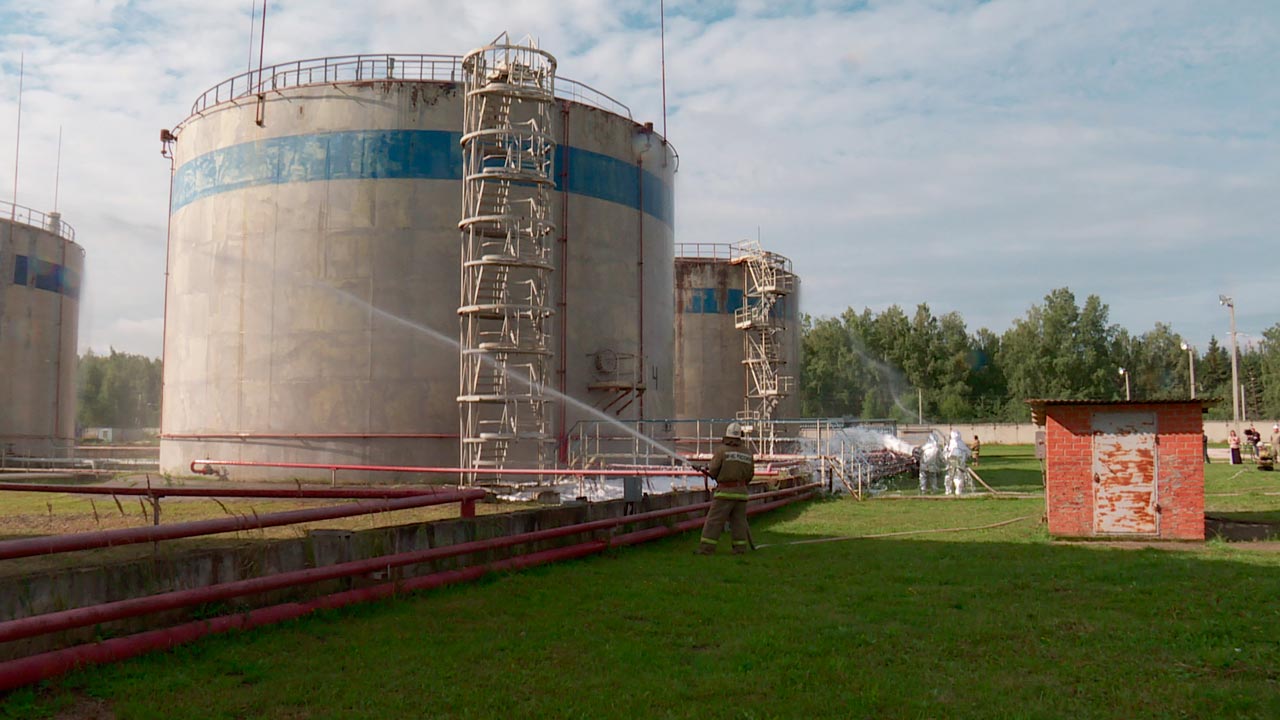 В Дзержинском районе произошло возгорание одной из нефтебаз. Утечка в резервуаре привела к возгоранию топлива. По такому сценарию начались учения регионального МЧС и вспомогательных структур на предприятии. На место происшествия оперативно прибыли пожарные расчёты. Помимо тушения возгорания спасатели эвакуировали всех работников нефтебазы, произвели перекачку топлива из аварийного резервуара в резервный. Опробовали и стационарную систему охлаждения баков, которая может работать и без электричества. По итогам учений возгорание потушено, топливо из аварийного бака успешно откачали, штабом дана положительная оценка действиям всех структур.