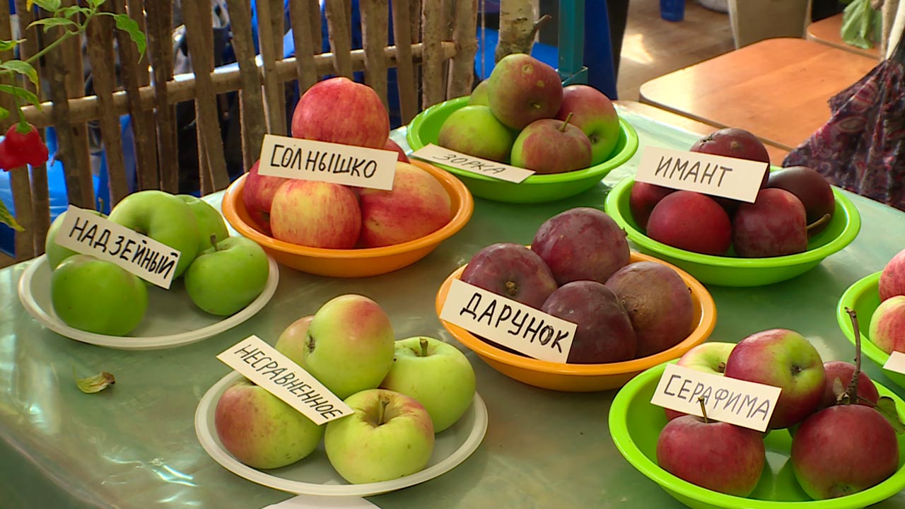 Юбилейная двадцать пятая выставка началась, по традиции, с песен. В этом году своими успехами делятся свыше 40 участников. На столах - цветы и изобилие фруктов, овощей, ягод. Найти можно даже те сорта, которые в нашей полосе вырастить проблематично. Например, персики или арбузы. Каждый старается привлечь внимание гостей как может - кто-то количеством экспонатов, а кто-то необычной подачей.