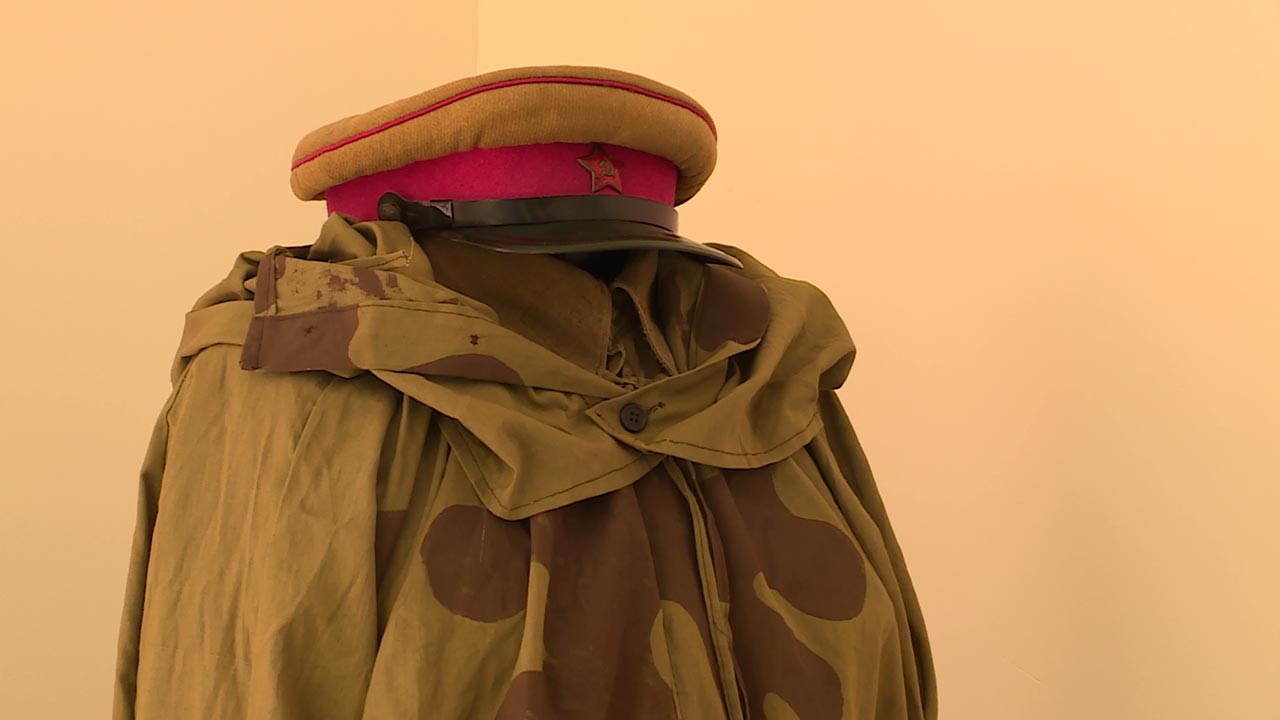 Униформа солдат Красной армии, предметы быта и вооружение - основная часть новой экспозиции в военно-историческом центре. С экспонатами знакомит заведующий секцией военной истории Юрий Нефедов, сам одетый в форму красноармейца образца 1941 года. Но он в летнем обмундировании. Зимняя экипировка здесь же рядом. Она уже включает варежки, портянки и подшлемник.
