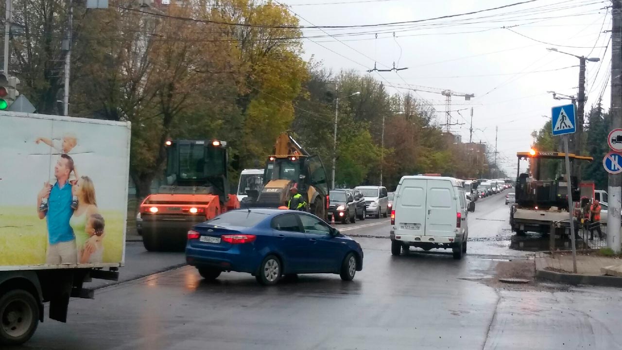 Утром в понедельник рабочие продолжали укладку финишного слоя асфальта на участке от вокзала Калуга-1 до пересечения с улицей Карла-Либкнехта. По состоянию на 9:30 утра работы продолжались в районе сквера в честь 50-летия ВЛКСМ на полосе движения из центра. В связи с этим проезд всех видов транспорта в сторону вокзала был серьезно затруднен. Пробка собиралась почти от центра города. Отметим, что работы шли только на одной полосе и, по всей видимости, немного позднее автомобилистов ждут аналогичные проблемы, но уже в противоположном направлении.
