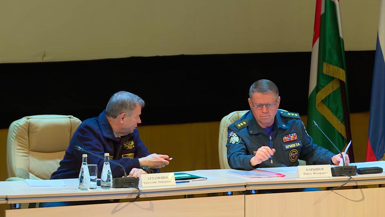 Продолжится тренировка уже в практическом ключе - подразделения МЧС отрабатывали свои действия при возникновении тех или иных чрезвычайных ситуаций. Стационарный пункт разместили в спортивном комплексе «Олимп», рядом был развернут мобильный городок. Здесь собираются те, кто живет в соседних домах, а это порядка 2,5 тысяч человек. Они приходят сюда, регистрируются, получают средства индивидуальной защиты, при необходимости оказывают медицинскую помощь. Итоги учений подведут уже вечером.