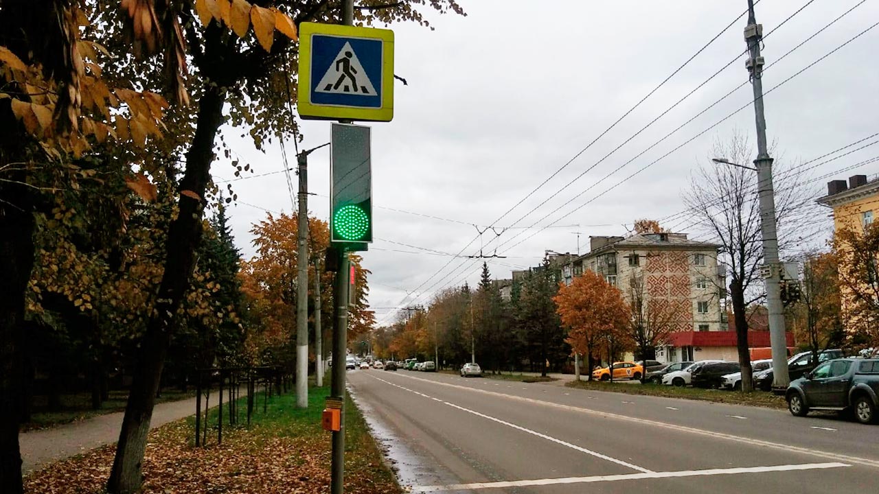 В Калуге на улице Ленина в районе домов №30 и №51 установили светофоры. Они установили на уже существующих переходах, которые ранее были нерегулируемыми. Новые устройства работают в вызывном режиме. Так, например, светофор у «дома с колоннами» дает пешеходам на пересечение проезжей части 17 секунд. В названных местах световые устройства стоят на придорожных столбах и дублируются светофором над проезжей частью.