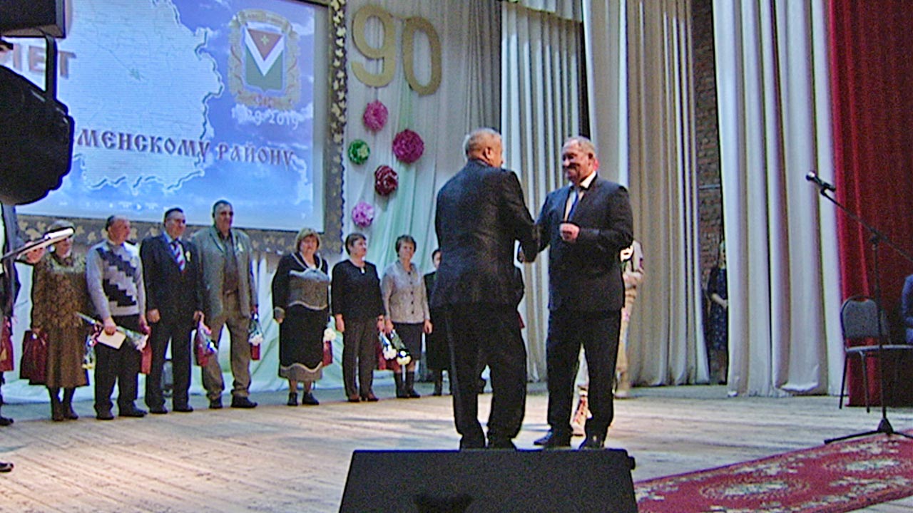 Слова поздравлений району передал губернатор Анатолий Артамонов. В качестве подарка глава области передал картину, которая теперь станет одним из экспонатов будущего исторического музея Спас-Деменска.