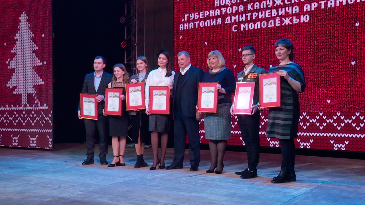 В Калужском инновационном культурном центре прошла традиционная новогодняя встреча губернатора с молодежью области. На ней назвали имена лучших студентов года. Из церемонии устроили настоящее шоу, которое помог провести известный российский музыкант Родион Газманов. Записку с именем самого активного в творчестве спрятали в большой воздушный шар. В итоге в этой номинации лучшей стала студентка калужского университета Анна Редега. Имя победителя в разделе «научная работа» на сцену принес квадрокоптер. Здесь приз достался представительнице технического ВУЗа Марии Сафроновой. Затем на сцену вышел иллюзионист, который помог узнать имя лучшей студентки в реализации социальных программ. Ей стала Татьяна Захарова. Ну а главный приз и титул студента года увез в Обнинск Иван Резник. Кроме того, участников встречи наградили благодарностями профильного министерства и губернатора. Анатолий Артамонов отметил, что в этом зале собрались только лучшие. Те, кто принимал активное участие в спортивной, общественной и научной жизни региона.