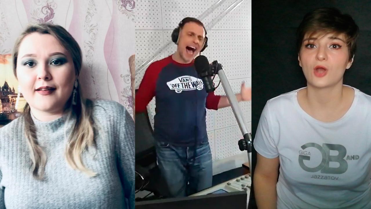 Вокалисты - те немногие, кто согласились поделиться видео. У них удаленно работа выглядит примерно так: глядя в камеру, подмигивая виртуальным зрителям, они исполняют каждый свою партию.
