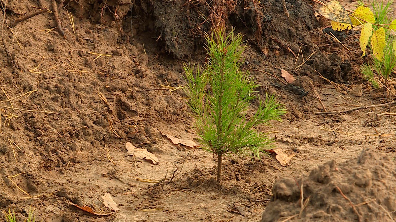 «Сад Памяти» высадили и в Людинове. Около города появились 4 тысячи сеянцев сосны и дуба. С высоты птичьего полета читается число 75 в знак юбилея Великой Победы.
