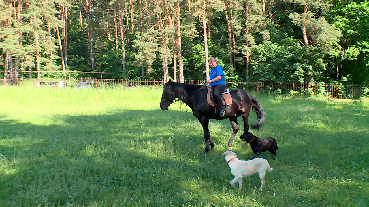 Кинолог рассказывает: «По началу и лошадям не нравилось, что рядом собаки. И собаки у меня очень ревностно относились, потому что я ехала на каком-то животном и не могла до них дотронуться. И они очень ревностно к этому относились, лаяли постоянно».