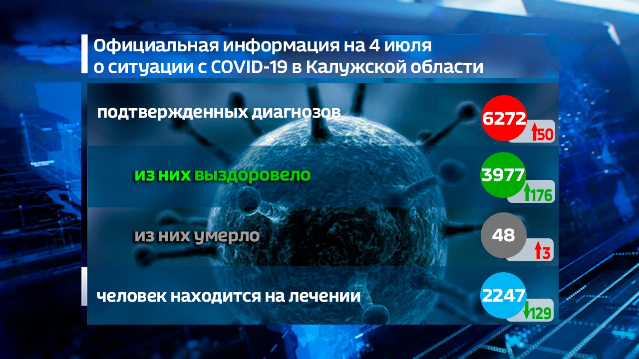 Всего с начала пандемии зафиксировано 6272 случая заболевания коронавирусом, 50 инфицированных выявлено за последние сутки. При этом выздоровело за сутки 176 человек. Всего в Калужской области 3977 бывших больных, которым был поставлен диагноз COVID-19.