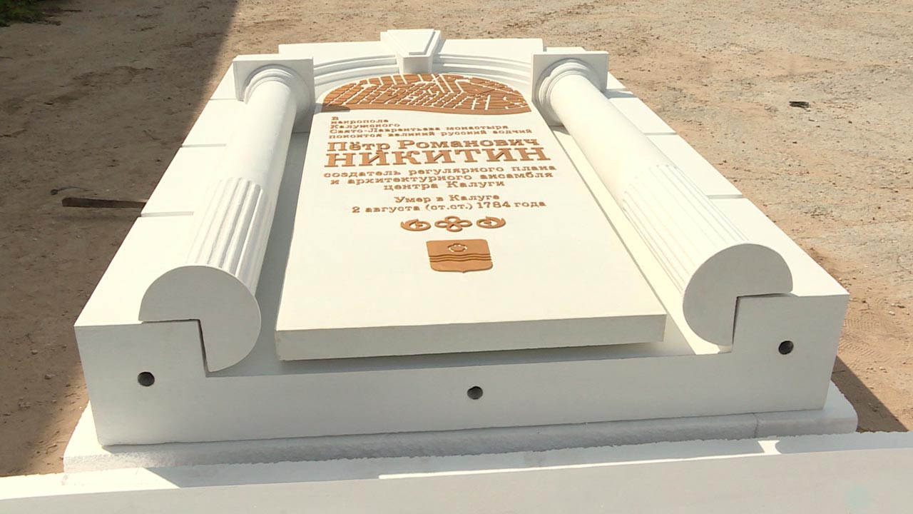 Вверху стелы схематично изображён изгиб Оки и генеральный план Калуги, который и принадлежит Петру Никитину. Портретов архитектора не сохранилось, также как и не известна дата рождения. Документально историки смогли лишь подтвердить дату смерти. Она и указана на монументе. Открытие знака запланировано на воскресенье, 23 августа на 12:30.