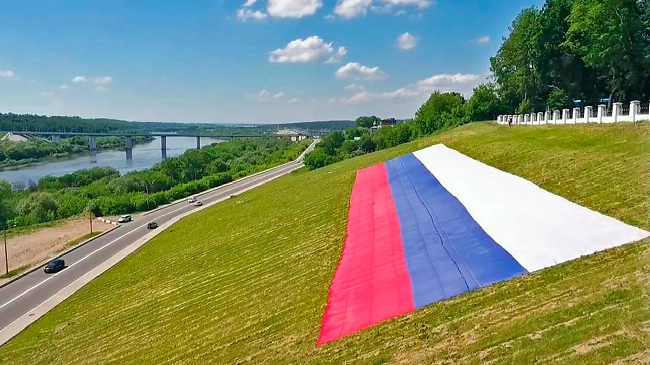 Его отлично видно с Правого берега Калуги. Огромный флаг возник на склоне парка культуры и отдыха. Оказалась увеличенная копия триколора на этом месте неспроста, а в честь предстоящего Дня государственного флага России, который будут отмечать завтра, 22 августа. Также для создания торжественной обстановки на различных зданиях и окнах областного центра появились триколоры поменьше.