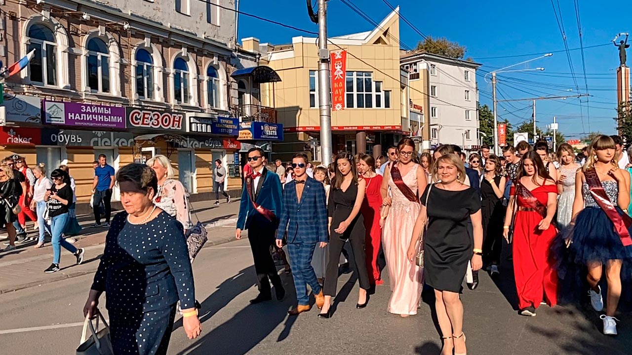 Торжественное движение выпускников в колоннах, придерживаясь рекомендованного расстояния, началось от площади Победы. Под звуки нестареющего вальса и других песен на школьную тематику, колонна выпускников двинулась по традиционном маршруту. Перекрытая для автомобилей улица Кирова всецело принадлежит вчерашним школьникам. По-разному — кто с песней, кто со слезами на глазах — они делают шаг во взрослую жизнь. В новый этап они идут в новых костюмах и платьях. Парад нарядов – традиция, которой ничто не смогло помешать.