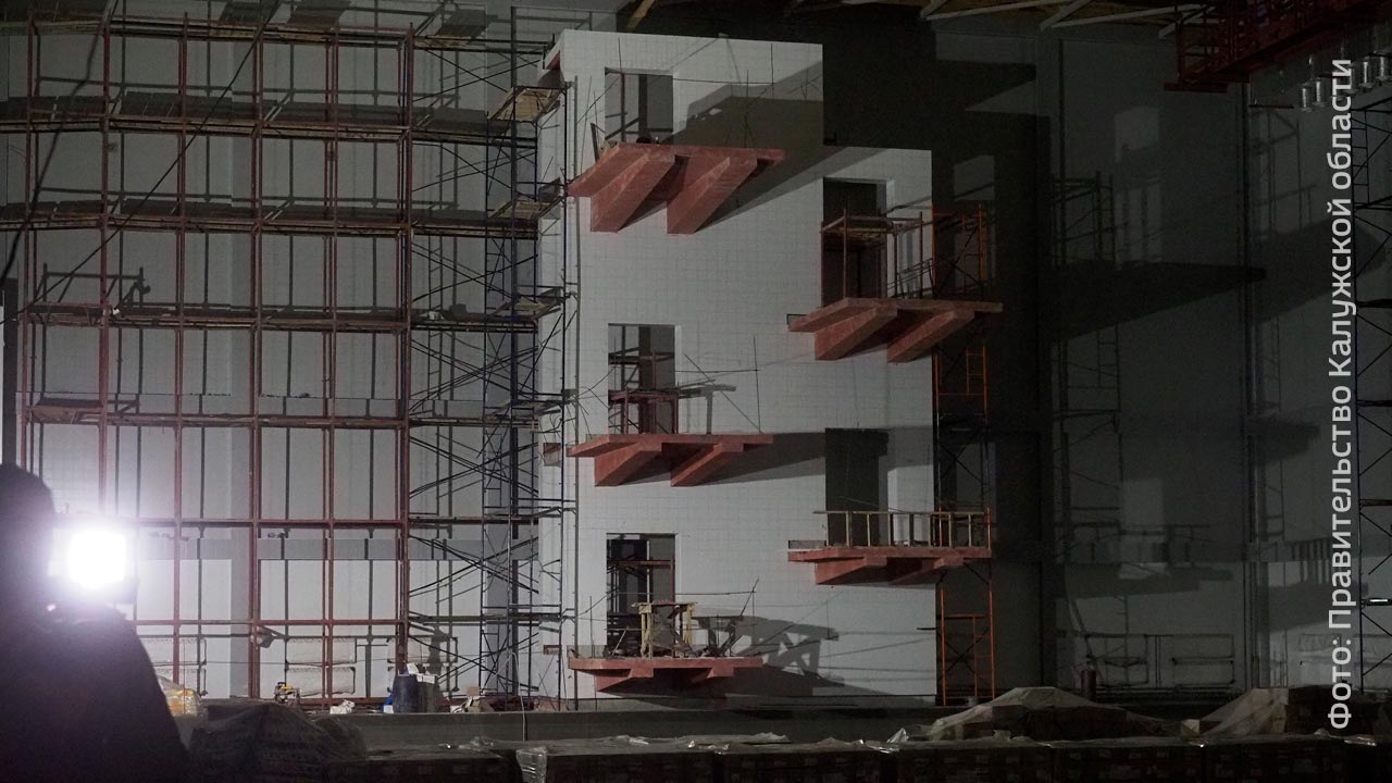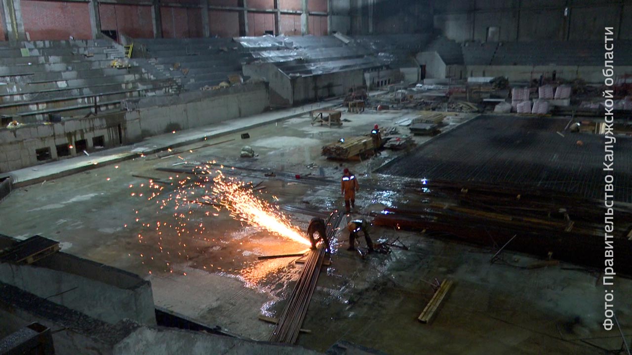 Губернатор Владислав Шапша провёл очередное совещание на строительной площадке калужского Дворца спорта. Он осмотрел ход работ по отделке ледовой арены, водного комплекса, корпуса размещения спортсменов и других помещений. Подрядчики рассказали, что на объекте сейчас задействовано около восьмисот рабочих.