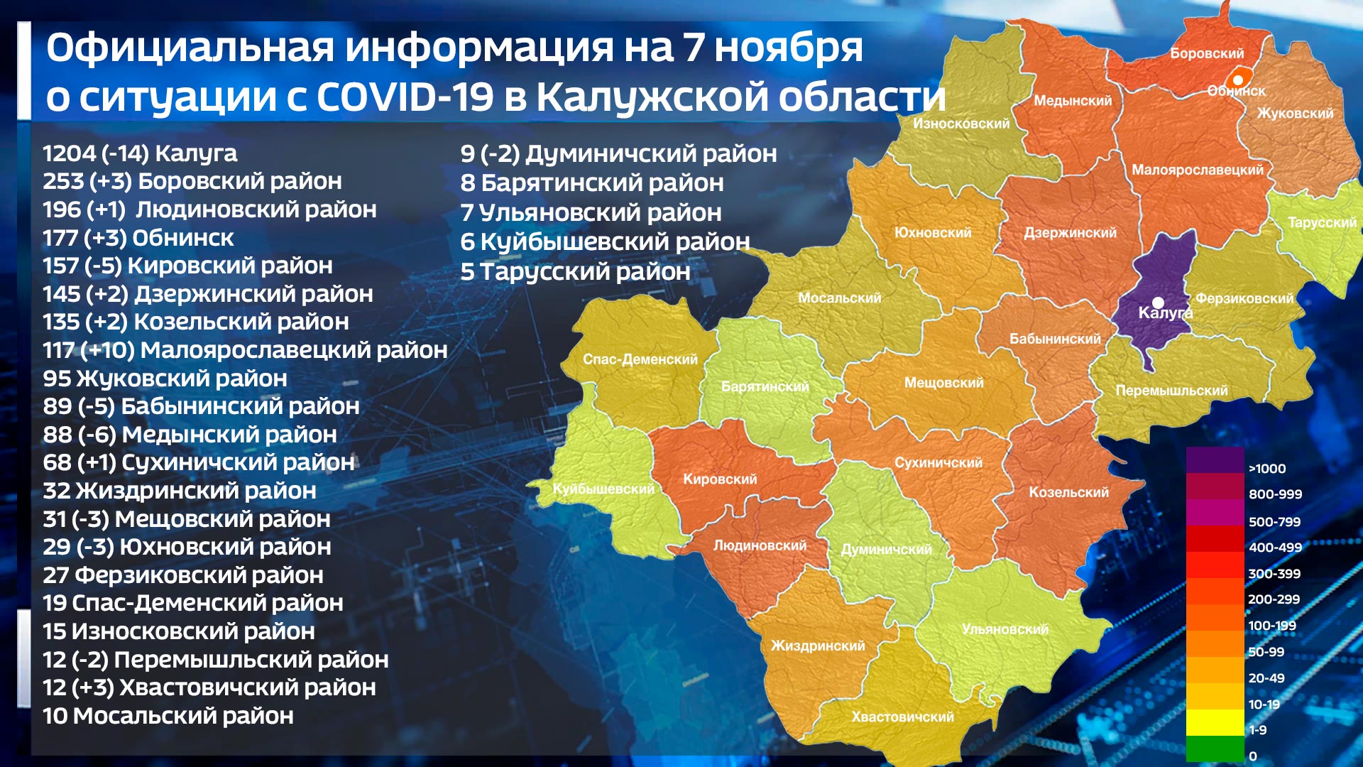 География распространения вируса по области складывается следующим образом:
