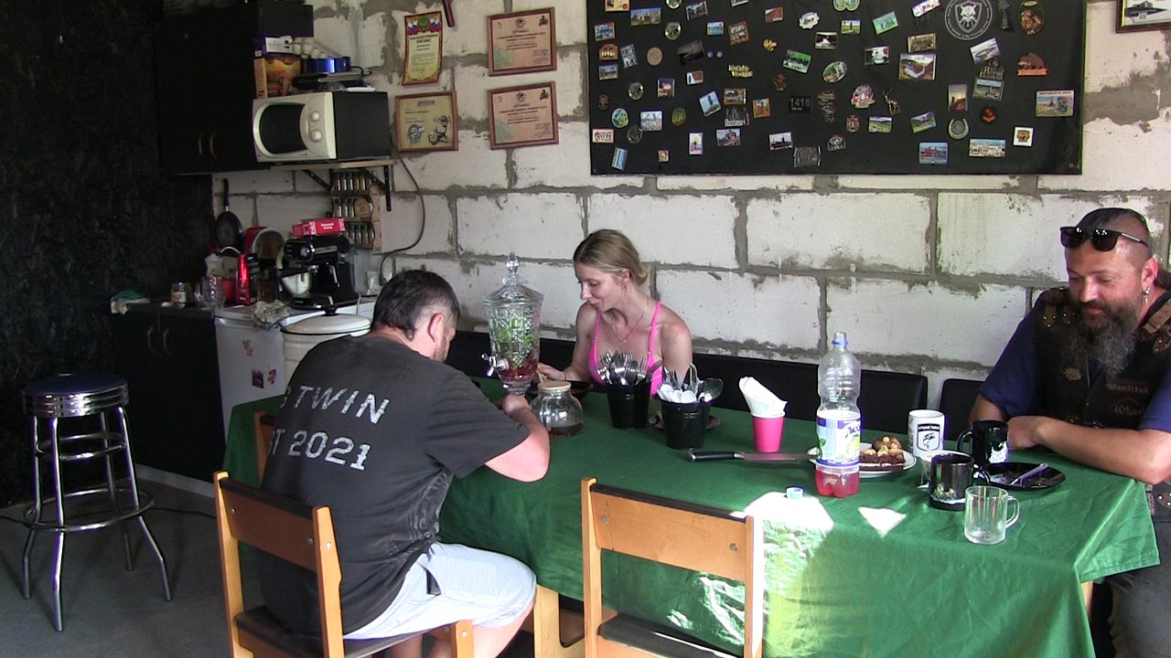 Свой байкпост — то есть временное пристанище для байкеров — Андрей Ивановский называет долгостроем. Сначала построили баню, а потом уже помещение для ночёвки и посиделок. Если нужно, инструменты и запчасти здесь всегда под рукой. Идея байкпоста очень проста и, рассказывает Андрей, у семьи байкеров всегда много гостей.