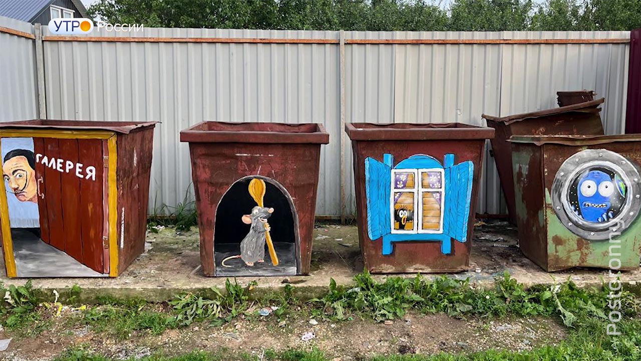 Открыл собственную "галерею". Так прокомментировал свою работу арт-художник с ником Postoronny. В Боровске благодаря фантазии молодого человека появились 4 контейнера для мусора с яркой окраской. На них подсматривает за всем происходящим Сальвадор Дали, повар-крыса Реми, галчонок из Простоквашино и внеземной разум.