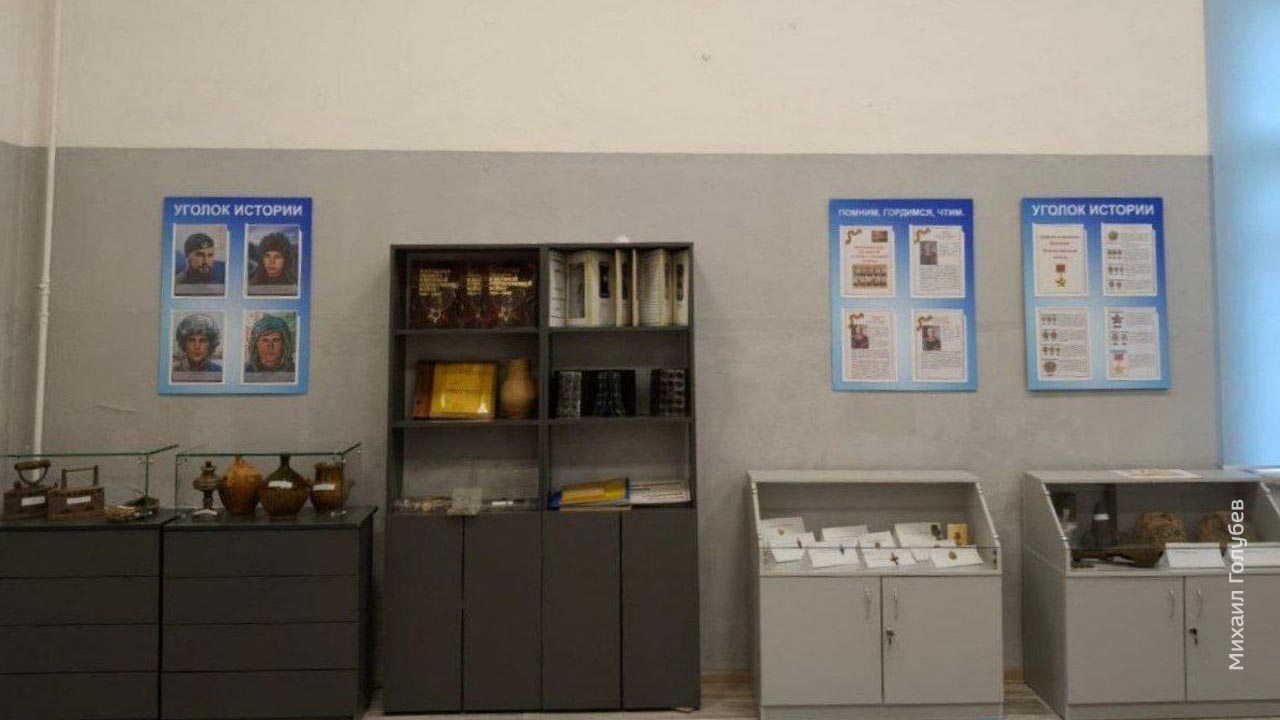 Уголок появился в кабинете истории. Там установлены витрины с экспонатами, большинство из которых относятся к периоду Великой Отечественной войны. Здесь ученики вместе с учителем Еленой Викторовной Кургиной подробно изучают историю родного края и страны.