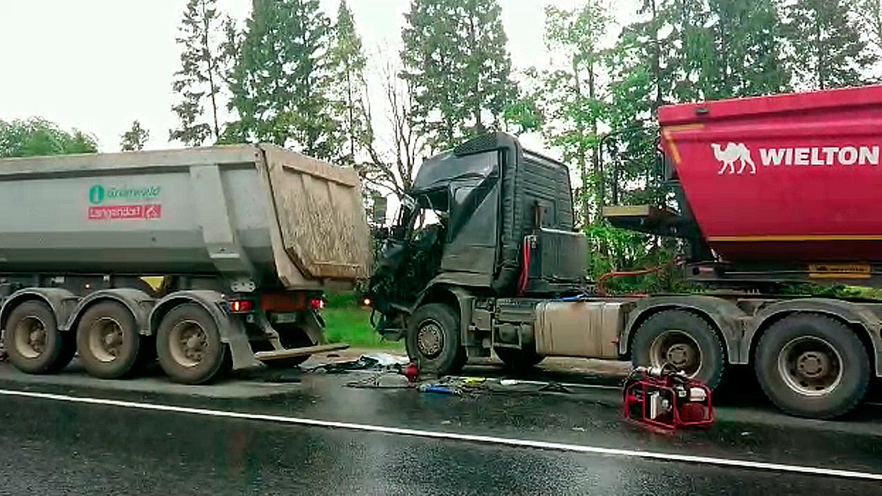 Участниками аварии стали тягачи с полуприцепами: DAF и Volvo. На сайте МЧС сообщается об одном пострадавшем. На месте работали пожарно-спасательные подразделения федеральной противопожарной службы МЧС России по Калужской области, патруль ГИБДД и бригада медицинской помощи.