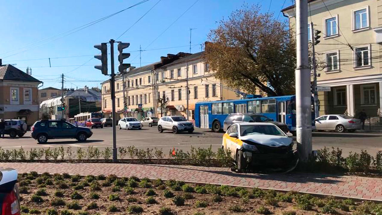 ДТП на перекрестке Ленина и Московской произошло 26 сентября около полудня. Участники аварии – Нива Шевроле и такси KIA Rio. При ударе отечественное авто устояло на проезжей части, иномарку же отбросило и понесло в направлении пешеходного тротуара. Движение неуправляемого механизма остановил столб у начала пешеходной зоны. К счастью, пострадавших в этой аварии нет.