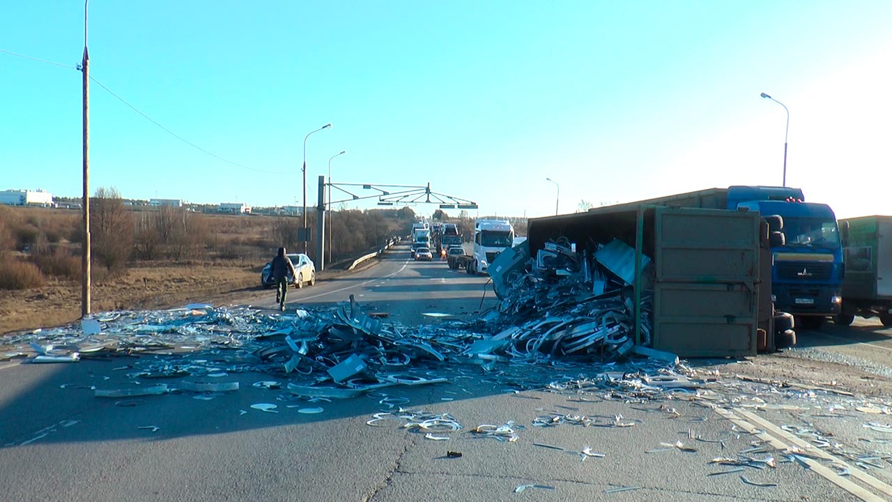 «Камаз» перевернулся на 90 километре трассы М-3 «Украина». ДТП произошло 25 февраля, во второй половине дня в Боровском районе. Большегруз перевозил металлолом с одного из предприятий технопарка «Ворсино» и выезжая со второстепенной дороги водитель не рассчитал скорость и габариты машины. В результате несколько тонн груза высыпалось на проезжую часть. 3 из 4-х полос для движения на трассе оказались перекрыты. Образовалась многокилометровая пробка. Сам виновник аварии отделался лишь синяками и ушибами. На устранение последствий аварии понадобилось несколько часов, всё это время движение по М-3 было затруднено.